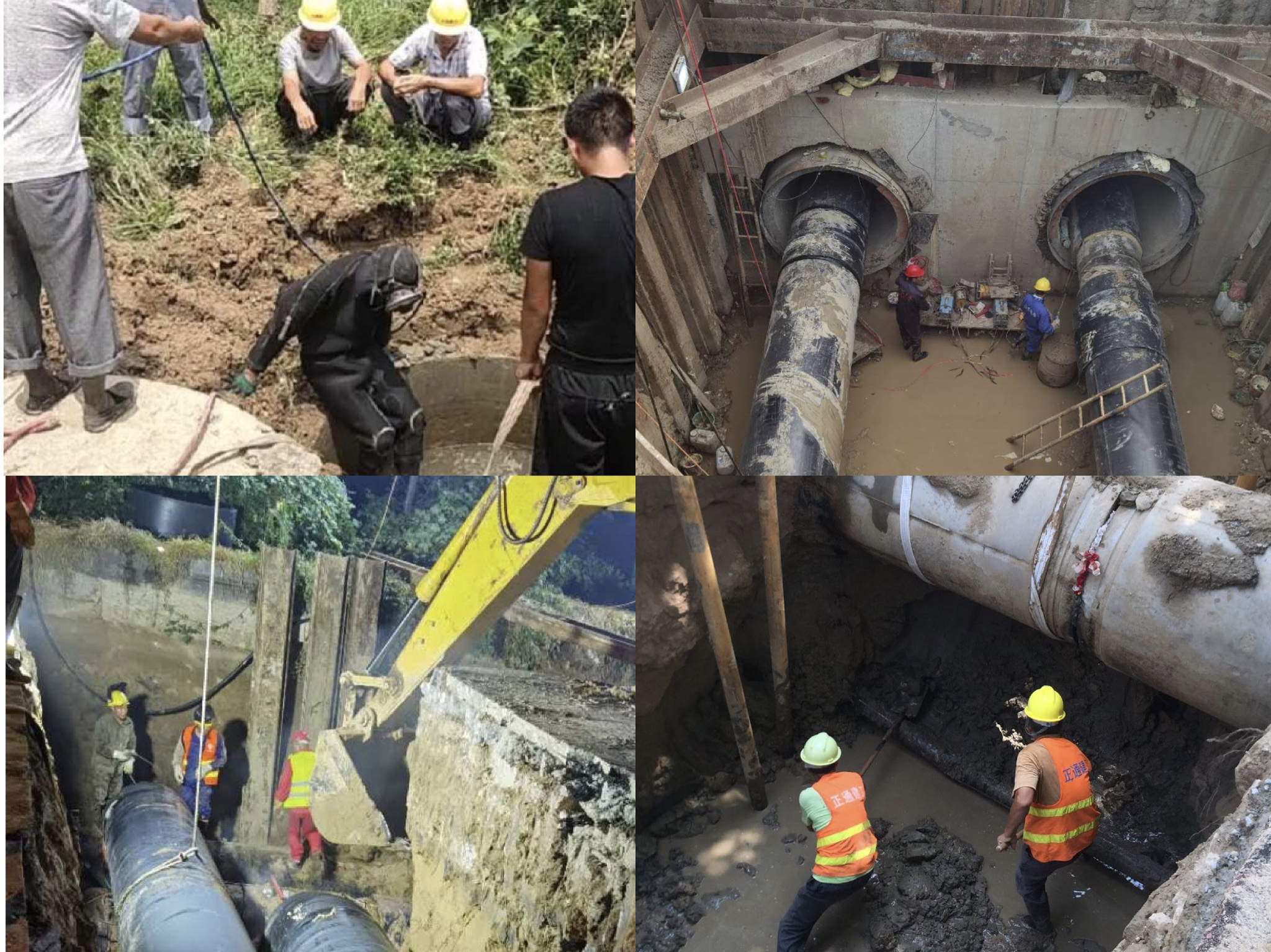 西部熱源替換工程嘉祥電廠線供熱管網(wǎng)總長15.3公里,工程作業(yè)面環(huán)境復(fù)雜。涉及清障7.5公里,穿越老運(yùn)河1處、頂管作業(yè)2處、涵洞4條、并行污水管1公里。面對工期緊、任務(wù)重、施工難度大等困難,參與建設(shè)的建工集團(tuán)和熱電集團(tuán)項(xiàng)目負(fù)責(zé)人團(tuán)結(jié)一心,齊抓共管,攻堅(jiān)克難,全力以赴推進(jìn)“清障協(xié)調(diào)、施工技術(shù)、材料保障”等工作。項(xiàng)目施工中,西一標(biāo)段匯祥路東段、西二標(biāo)段等雨水、污水管道,與施工管道并行,且老化嚴(yán)重,經(jīng)常出現(xiàn)雨水、污水管網(wǎng)泄露后倒灌溝槽的情況。項(xiàng)目部在地下管網(wǎng)資料不齊全的情況下,采用“蛙人”潛入污水中,探查漏點(diǎn)進(jìn)行封堵漏。由于工作坑面積大,漏水點(diǎn)位小,“蛙人”們在污水中一處一處用手感應(yīng)摸排,每次需要潛入污水中數(shù)小時(shí)才能完成,對施工工作造成極大困難。安居街道3.7公里施工路段緊鄰老運(yùn)河,地下水位淺,基坑強(qiáng)排水降水效果不明顯,項(xiàng)目部集思廣益,通過打降水井、地面焊接吊入溝槽減少低水位作業(yè)空間等方式,保障項(xiàng)目如期進(jìn)行。
