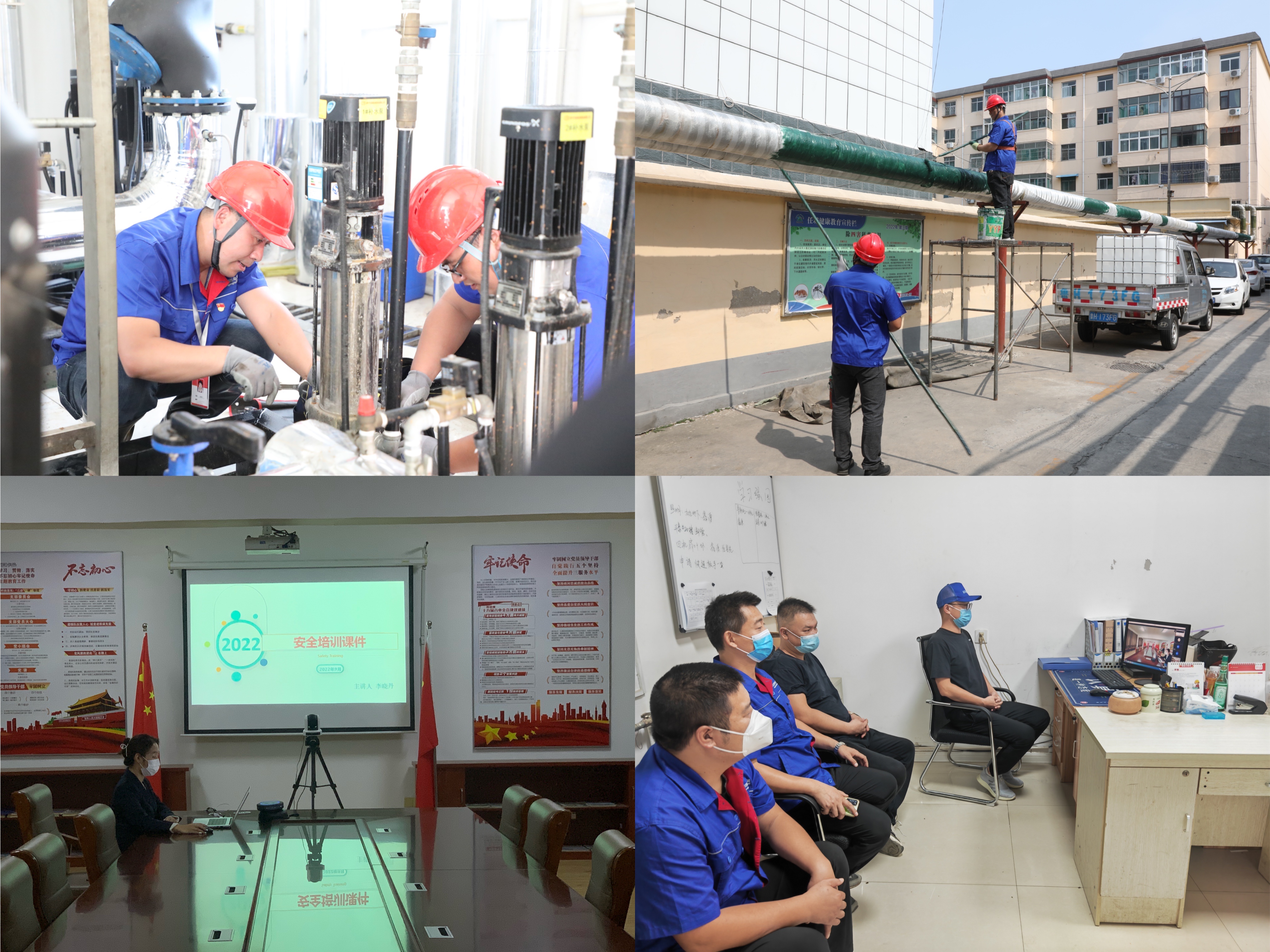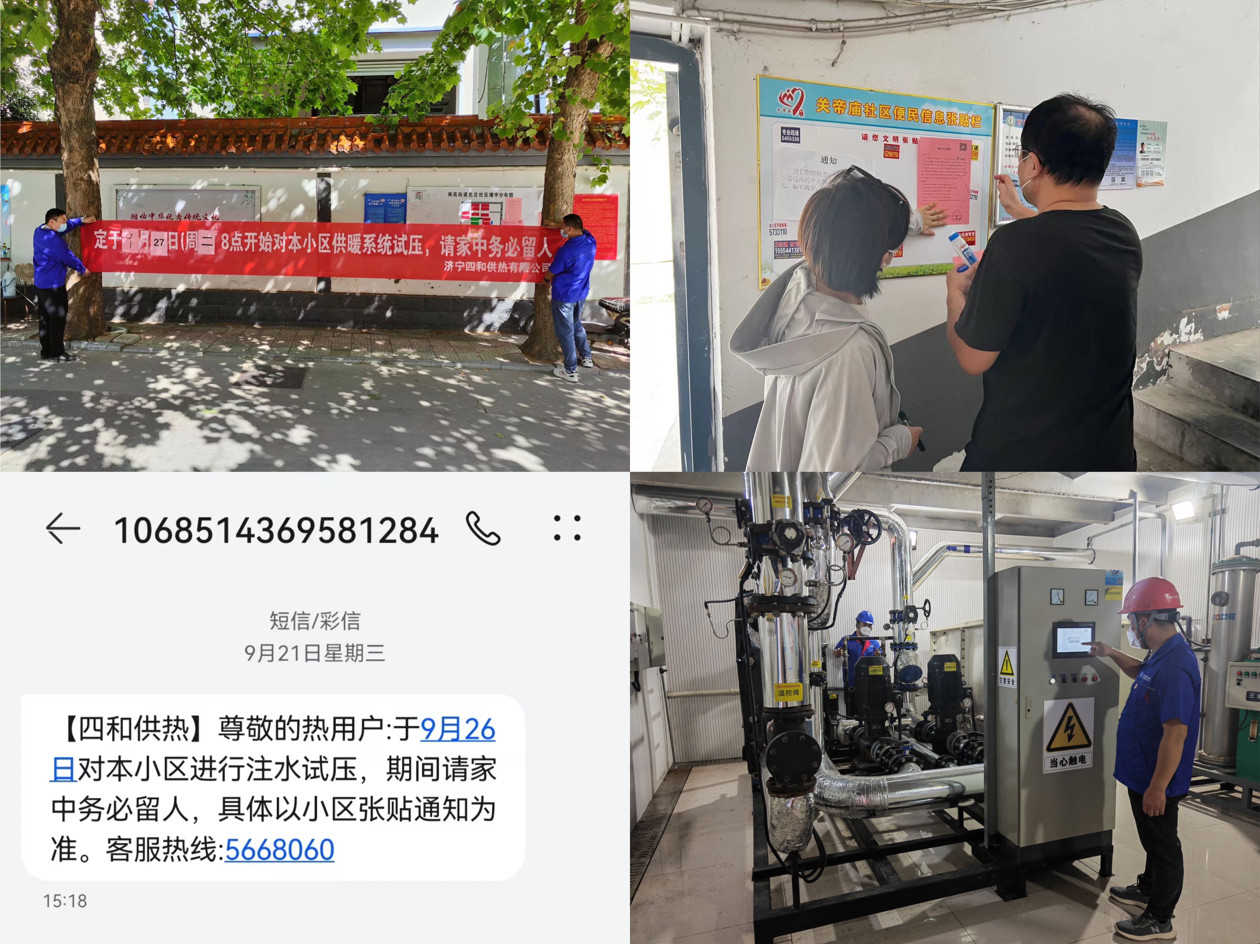 為認(rèn)真落實(shí)上級疫情防控工作部署要求,保障公司職工、外協(xié)勞務(wù)人員的安全,讓用戶更加安心、放心,公司積極組織開展線上安全生產(chǎn)及疫情防控培訓(xùn),不斷增強(qiáng)員工疫情防控意識和安全操作意識;同時(shí)安排相關(guān)職能科室提前一周張貼打壓通知,懸掛打壓條幅,向小區(qū)熱用戶手機(jī)發(fā)送打壓短信通知,讓用戶能及時(shí)得知小區(qū)供熱設(shè)施注水打壓的消息,方便用戶有問題可以第一時(shí)間聯(lián)系到片區(qū)服務(wù)人員。
