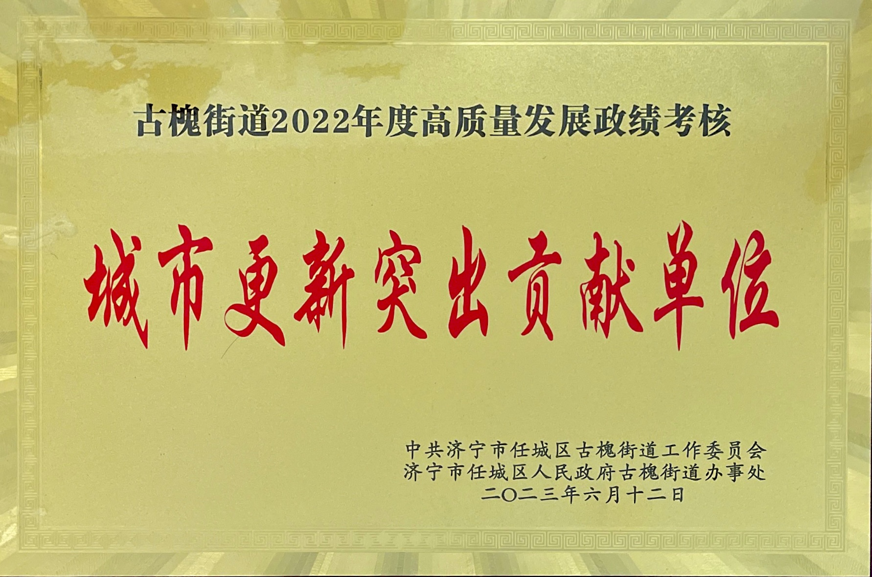 濟寧四和供熱有限公司榮獲古槐街道 2022年度“城市建設(shè)突出貢獻單位”表彰
